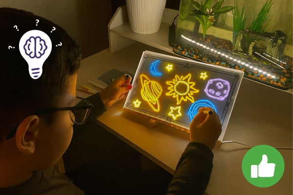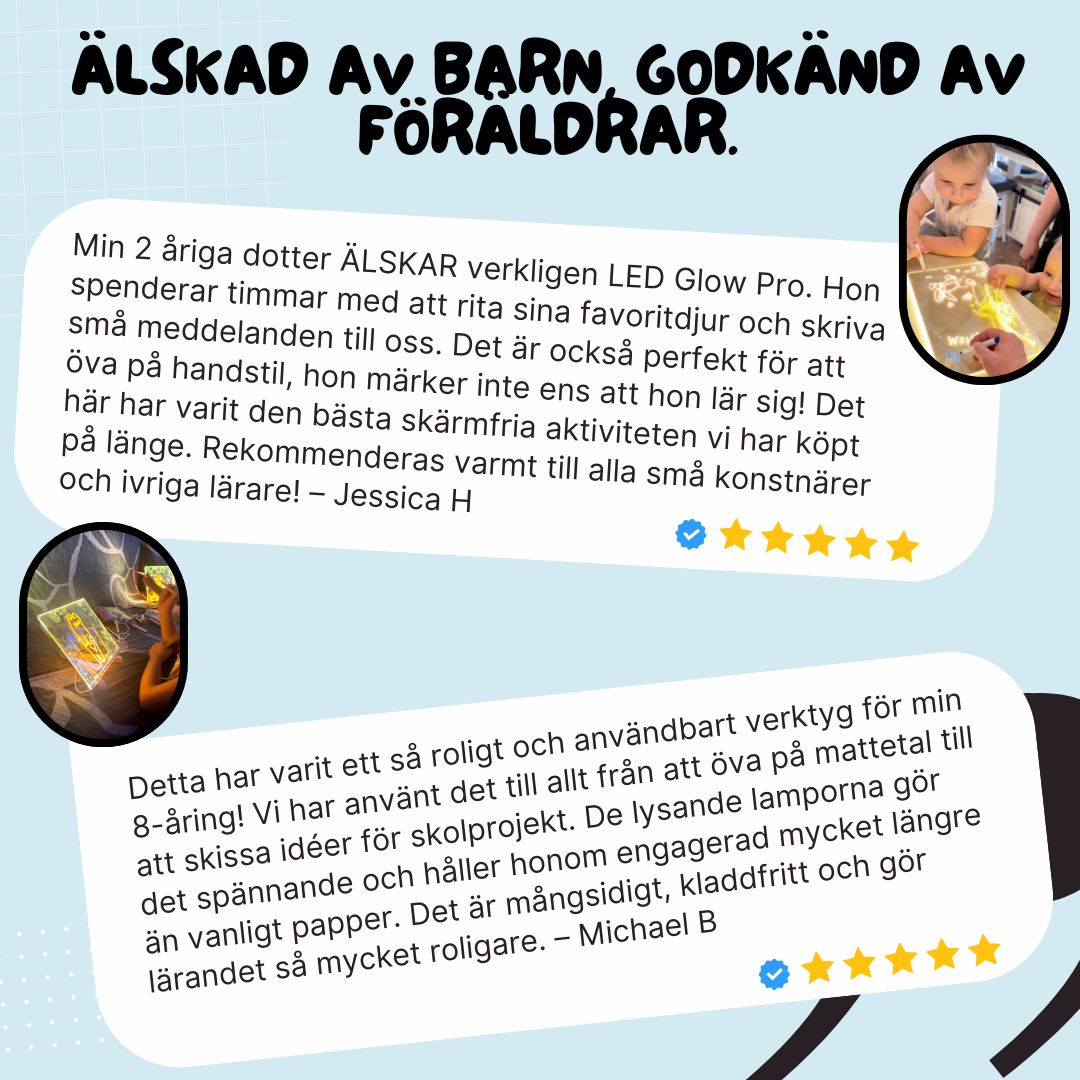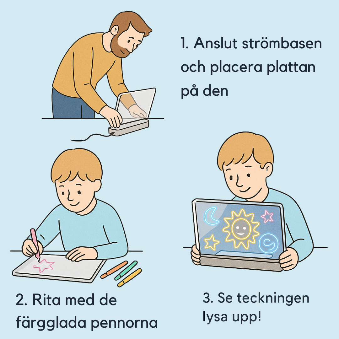 - ✨ Istället för att bara titta på en skärm får barnen skapa själva och se sina idéer lysa upp.